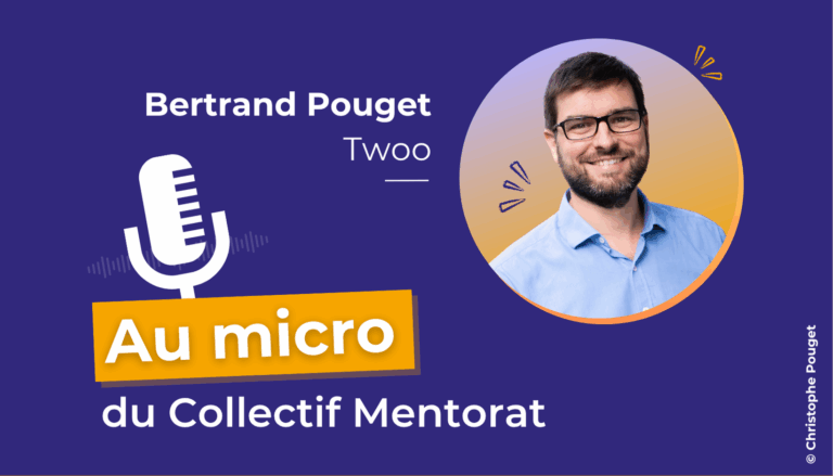 Bonjour, je m’appelle Bertrand Pouget, je suis directeur méthodologie, formations, impact et qualité au sein de Twoo – Grandir avec le mentorat depuis neuf ans. Notre mission est d’accompagner par le mentorat les entrepreneurs et les salariés dans leur développement personnel et leur insertion professionnelle. Pour cela, l’association porte trois marques :